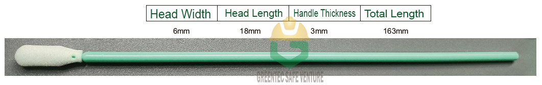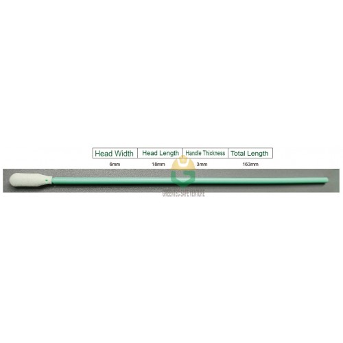 Cleanroom Polyester SwabsPkg : 100pcs/pkt Total Length: 163mmHandle Thickness : 3mmHead Length : 17..