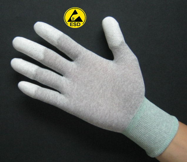 ESD PU Top Fit Glove are made of high electricity carbon yarns (10 Power 6-9 ).